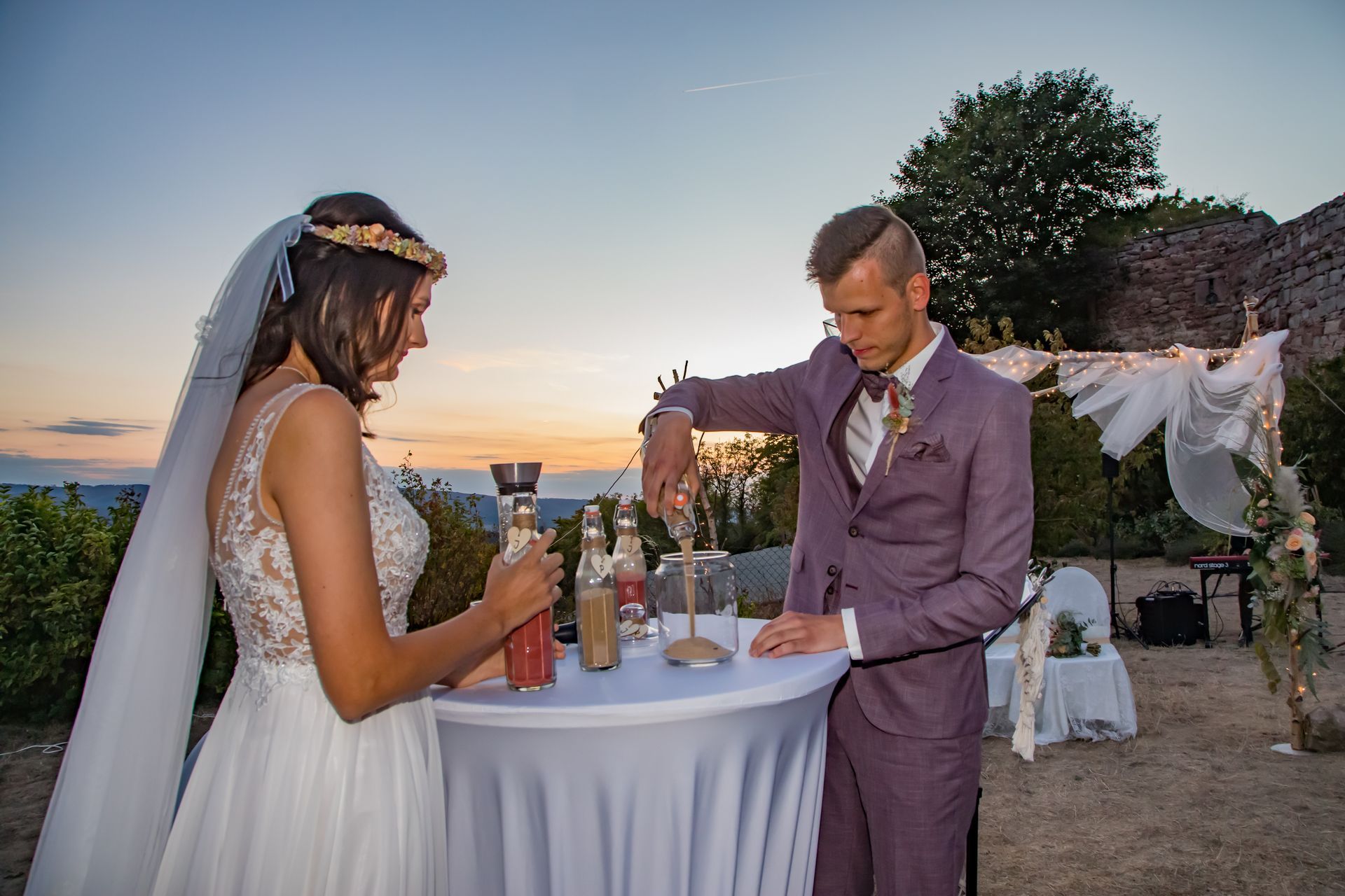Jessy und Pascal haben sich an eine Abendtrauung im Sonnenuntergang auf